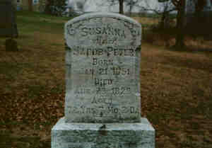 Susanna married Jacob Peter, son of Casper Peter II and Anna Elizabeth Ribsamin. (Jacob Peter was born on 22 Mar 1751 in Heidelberg Twp, Northampton Co., Pennsylvania, died on 22 Apr 1804 in Heidelberg Twp, Northampton Co., Pennsylvania 1 2 and was buried on 22 Apr 1804 in Heidelberg Cemetery Old Sect Row 12.)